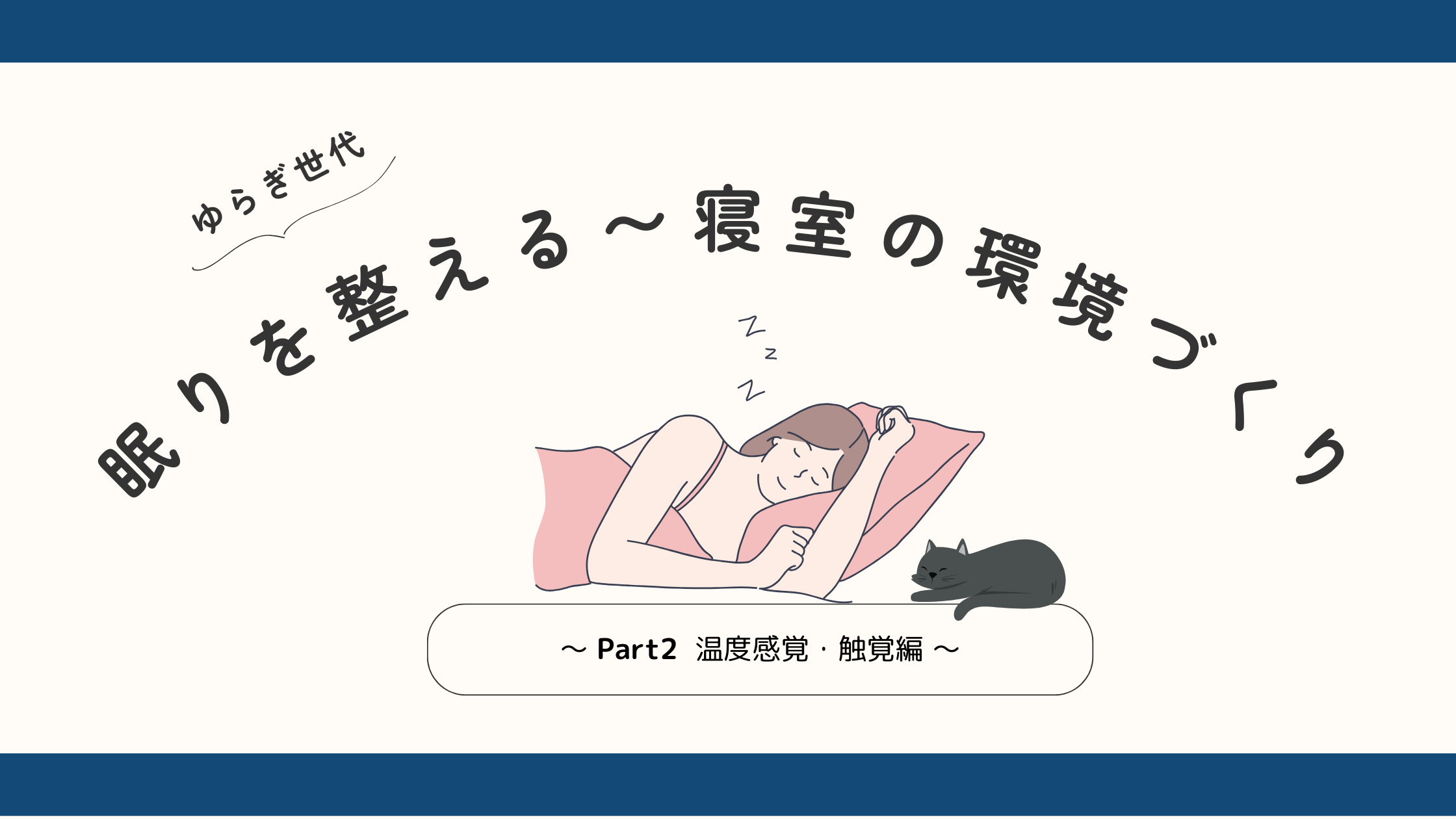 Part1の視覚・聴覚・嗅覚編につづき、今日は「温度感覚」と「触覚」に注目して、眠りやすい寝室環境を整えるコツをお伝えします。